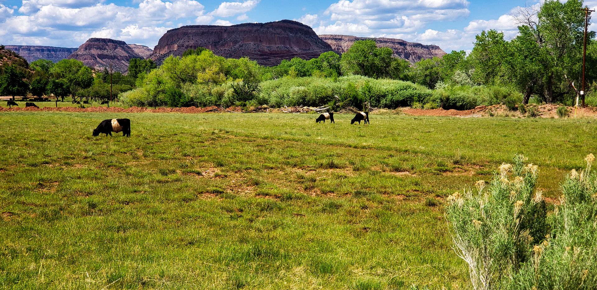 Healthy Grass-fed Beef. No hormones or antibiotics. Low stress life on pasture with river water, and calves allowed to wean naturally.