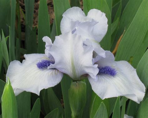 SDB – Standard Dwarf Bearded Iris have similar flowers to the more familiar Tall Bearded Iris, but on a dwarf plant that blooms much earlier. A good choice for the rock garden, or as an edging at the front of the border. Prefers a warm sunny site with good drainage. Easier to grow, and generally tougher than the Tall Bearded Irises. Ranging in height from 20 cm (8 inches) to 41 cm (16 inches), they begin their bloom as the MDBs are ending, still quite early in the iris season. They are best displayed in clumps where they give the effect of a “cushion” of individual blooms.