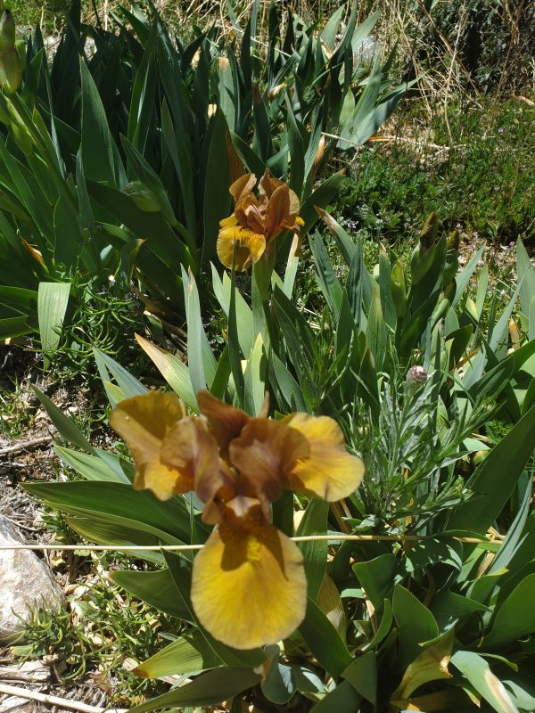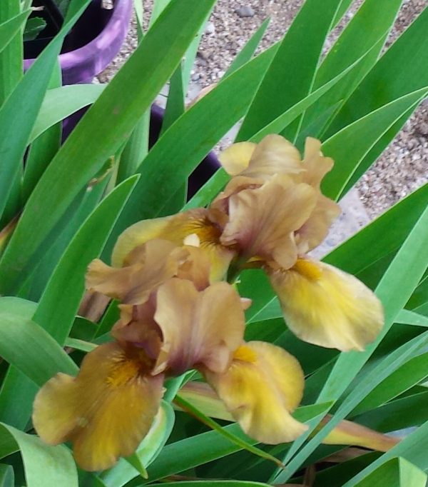 This is an interesting Iris of a green-gold color with lavender sub-hues. Strong growing border iris. I do not know if it is a named iris, but I call it Leprechaun’s Gold.